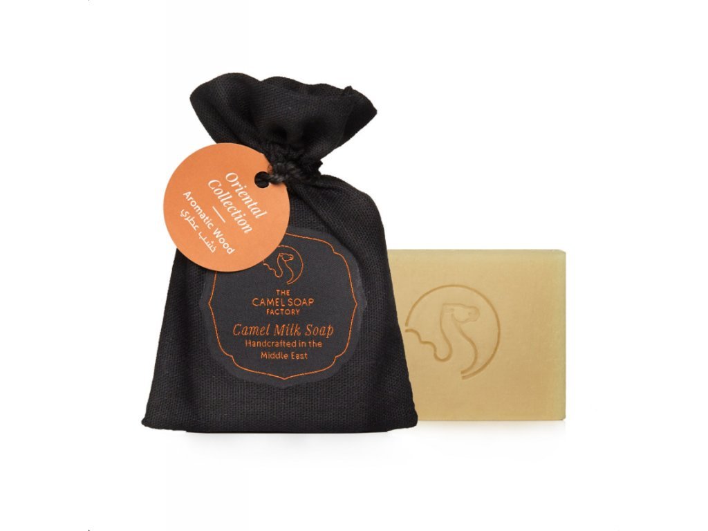 Luxusní parfémované mýdlo aromatické dřevo z velbloudího mléka, bambuckého másla, kokosového a olivového oleje hydratuje pokožku a je dostatečně jemné pro každodenní použití na ruce i tělo.
