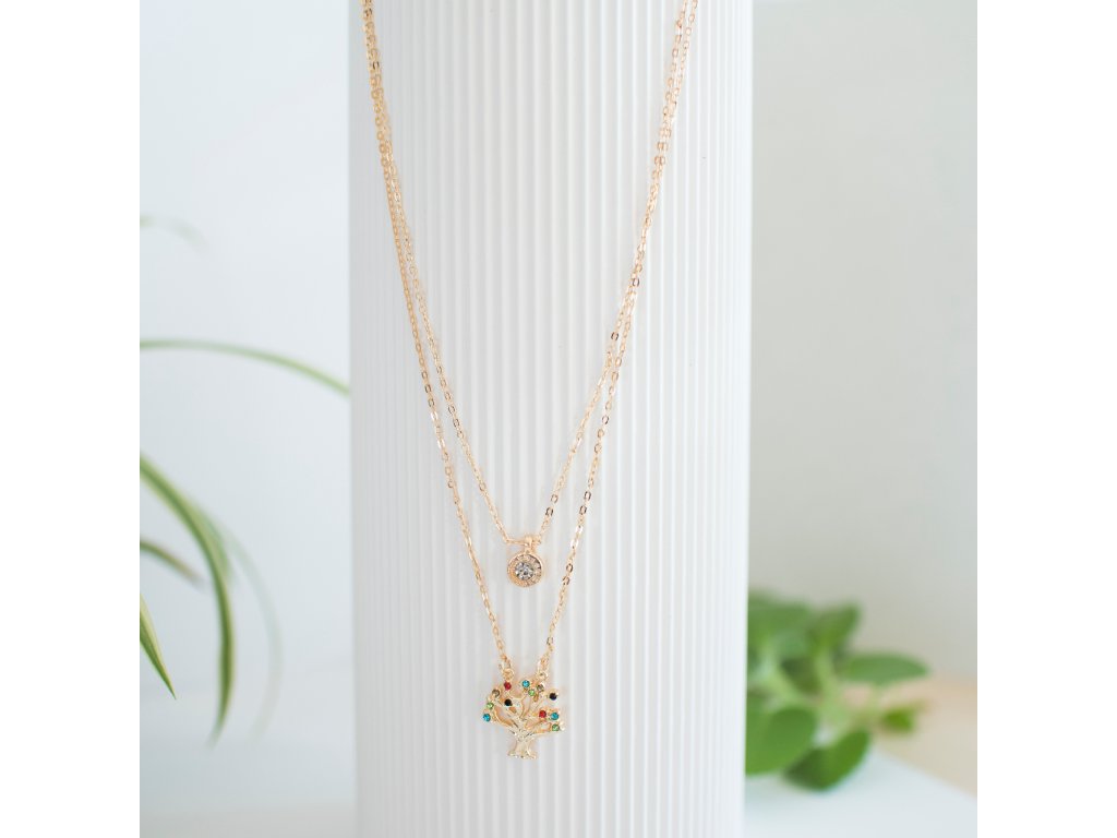 Elegantní řetízek se symbolem Strom Života ve zlaté barvě s barevnými kamínky. Podívejte se i na další nabídku náhrdelníků ZDE.
