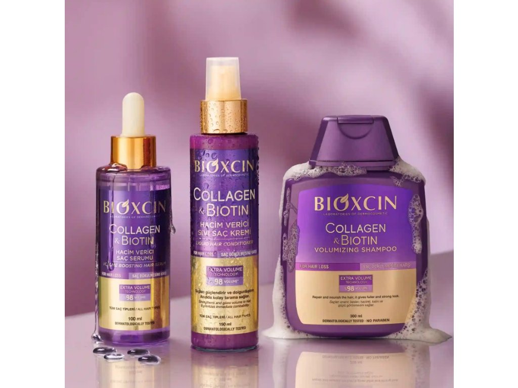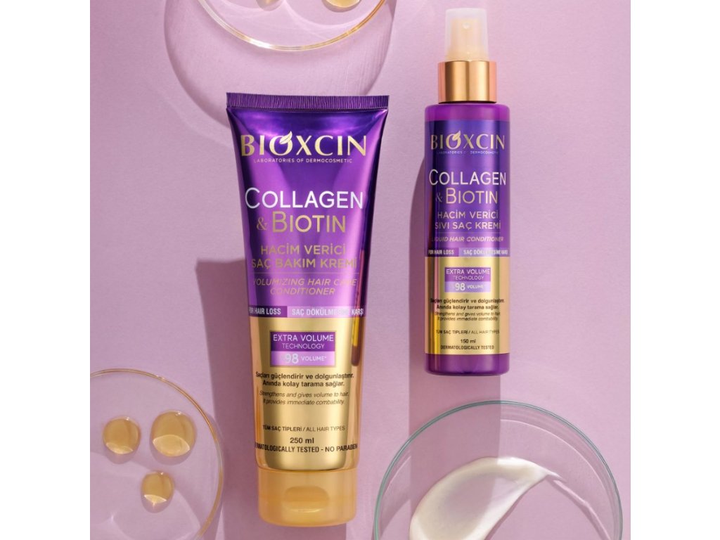 Bioxcin Collagen & Biotin Volumizing Hair Conditioner increases hair volume and strengthens thin, weakened hair thanks to the content of hydrolyzed collagen, biotin, and bioactive peptides. It helps prevent hair loss with the patented BioComplex B11.