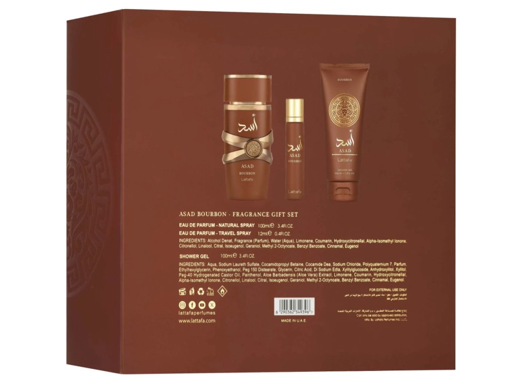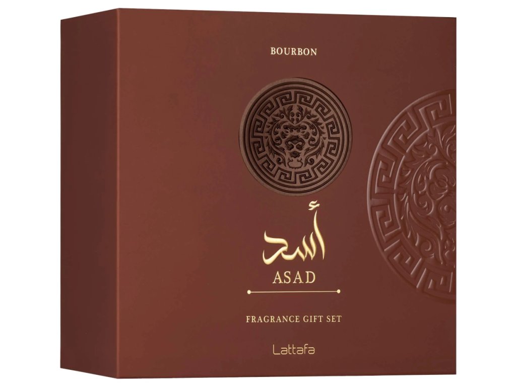 Lattafa Dárkový set Asad Bourbon - Parfém 100ml + Olejový parfém 12ml + Sprchový gel 100ml