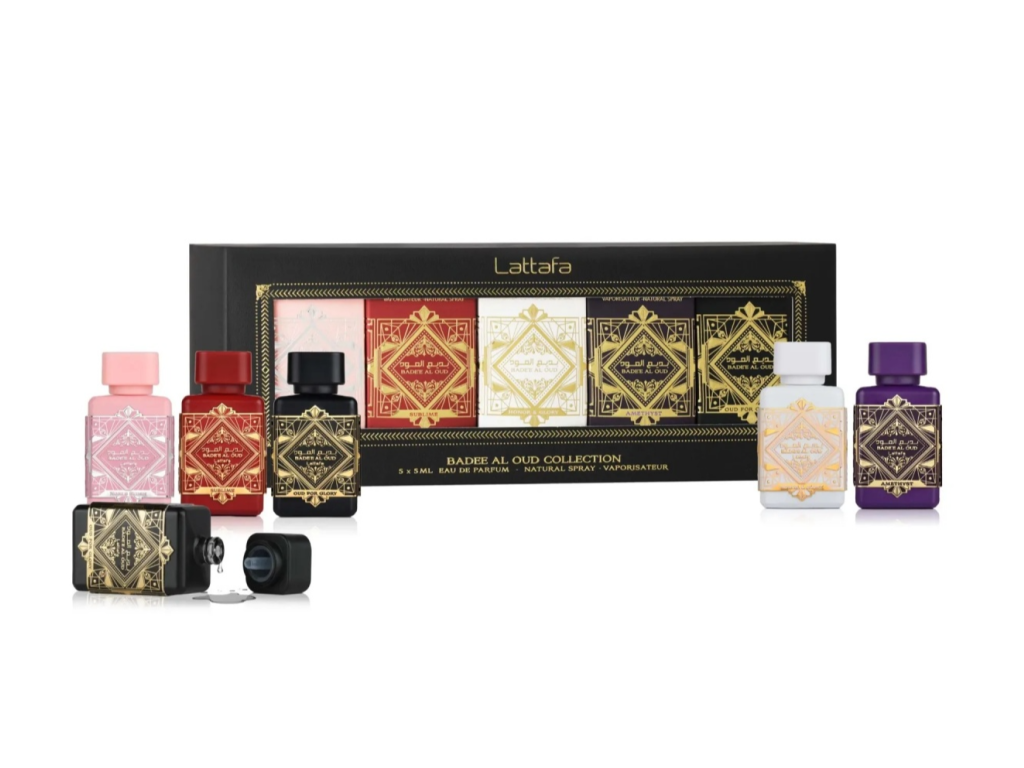 Objevte rozmanitost orientálních vůní v dárkové sadě Lattafa Badee Al Oud Collection Set 5x5 ml od značky Lattafa. Luxusní balení ukrývá pět mini flakonů (5 ml), díky nimž můžete poznat různé tváře oblíbené kolekce a vybrat si tu, která vám nejvíce sedne.