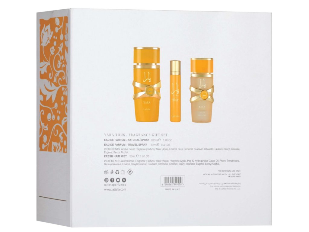 Lattafa Dárkový set Yara Tous - Parfém 100ml + Olejový parfém 12ml + Vlasový sprej 50ml
