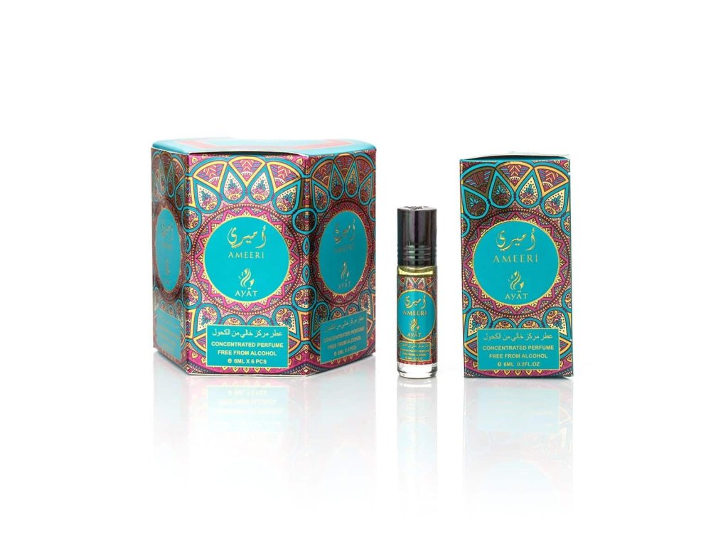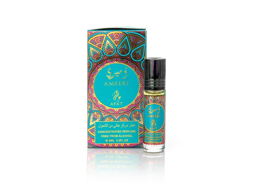 Olejový parfém AMEERI značky Ayat je arabská lehká svěží vůně pro muže i ženy ve flakónku s roll-onem. Parfém je díky olejové bázi intenzivní a má dlouhou výdrž.