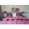 Krásný moderní povlak na polštář z marocké dílny v růžovo-fialové barvě se skvěle hodí do moderního interiéru.